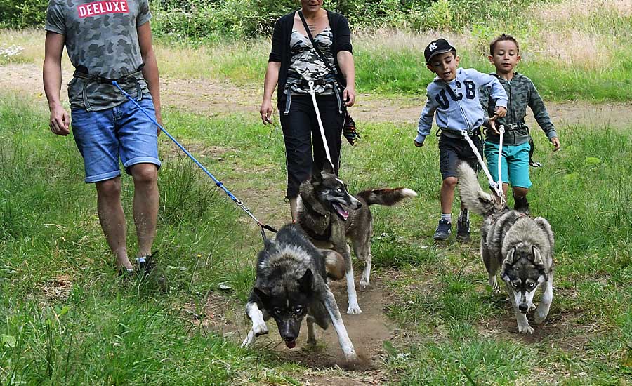 Activité familiale de pleine nature adaptée à tous. Balade pédagogique et ludique avec des chiens Huskies.